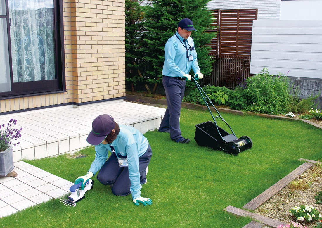 庭全体のおそうじはもちろん、樹木や芝生の肥料やり、病害虫の防除など、専門のスタッフ2名が定期的にお庭をお手入れ。お客様のご要望やお庭の状況に合わせて、適切な作業プランをご提案します。サービスは年12回または6回。1回60分または30分のコースからお選びいただけます。