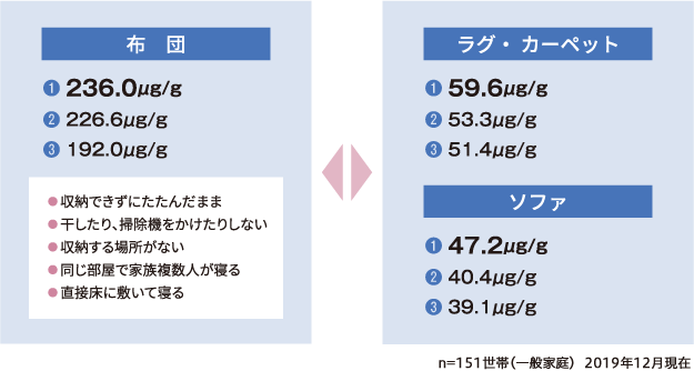 日常生活や掃除の方法、頻度などによってDer 1量に差があることが判明しました。