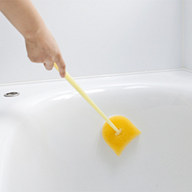 柄の長さが約48cmあるので楽にスミまで届いてしっかりおそうじできます。また、90°まで自由に動くスポンジがいろいろな面にフィットし、浴室全体をしっかり洗えます。