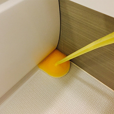 2004年まで販売していた「バス用スポンジ(柄付)」を「再販売してほしい」というお声を多くいただき、スポンジの取替えもできる「バススポンジ柄つき」が新発売!スポンジの取替え以外にもおそうじが楽しくできるような商品を目指しました。