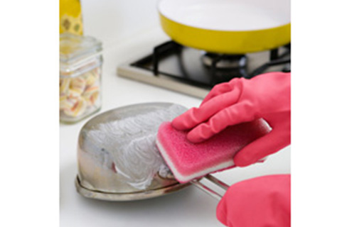 きめ細かな2種類の研磨粒子で、鍋やガスレンジの焦げつきも表面に傷をつけずに落とせます。