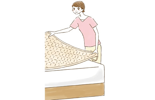 ふかふかの厚みが夏の寝汗をたっぷり吸収し、お使いのベッドや敷ふとんを守ります。