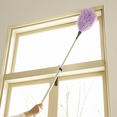 73cmから131cmまで伸縮するハンドル(別売)をつければ、手が届かない家具の上、照明器具、エアコン、家具と家具のすき間などもラクにおそうじできます。