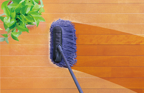 ボリュームたっぷりの綿とナイロンの混紡パイルだから、床面をキズつけず、やさしくおそうじできます。フローリングの溝の細かなホコリも長い毛足で逃しません。