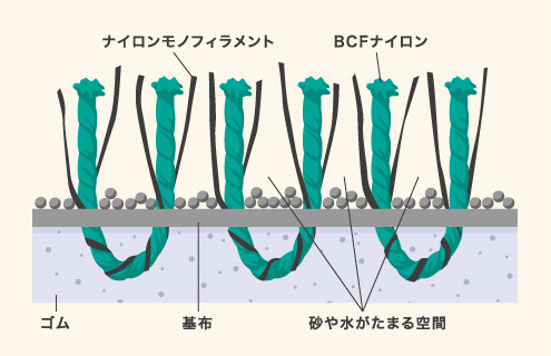 ダストコントロール機能を高めたダスキン独自の2種類のパイルが、泥汚れをしっかりキャッチ。吸着剤加工で、軽い小さなホコリもとらえて離しません。