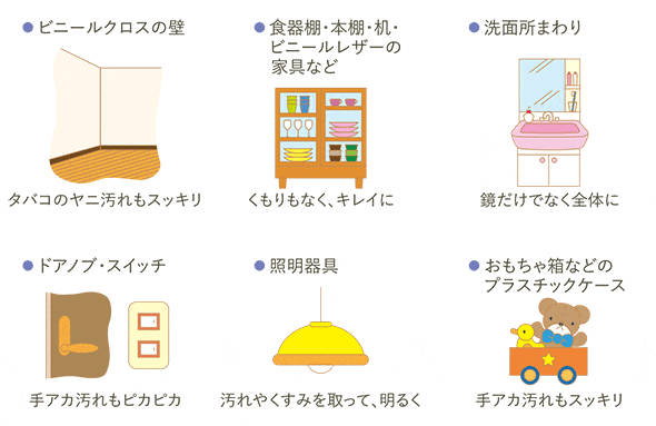 ガラスはもちろん、おうちのいろいろな所の汚れがすっきり!