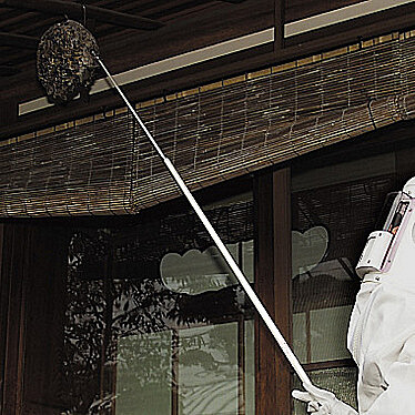 ハチ駆除サービスの社内ライセンス資格を取得したプロのサービススタッフが対応。専用資器材を用いて、安全にハチの巣を除去します。