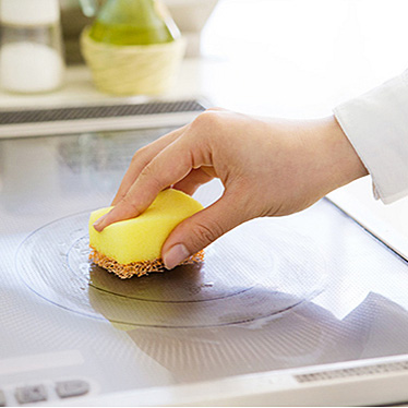 IHコンロにこびりついた頑固な汚れも傷をつけずにしっかり落とせる。