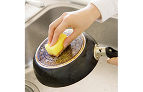 傷がつきにくいので、フライパンや鍋底などいろんな汚れにぴったりです。