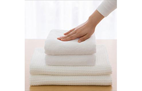 ふっくら仕上げて静電気やケバ立ちを防ぎます。吸水性も損ないません。防汚剤配合で、黄ばみ・黒ずみを防ぎます。