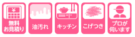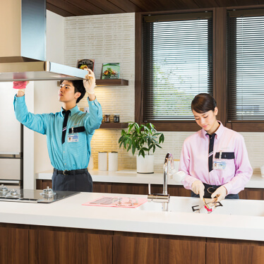 水や油を頻繁に使うキッチンは汚れ方もガンコ。こすってもなかなか落とし切れない油汚れやこげつき、見落としがちな細かい場所も残さず洗浄します。