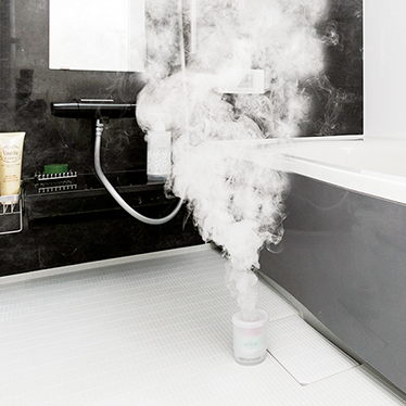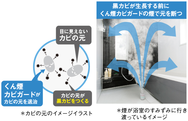 除菌成分の煙が天井や浴室の すみずみまで行き渡り、 カビの元を除菌!