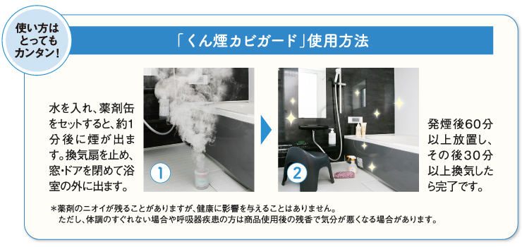 薬用石けんなどにも使われている除菌成分の煙でカビの元を退治。