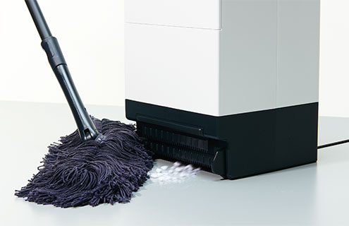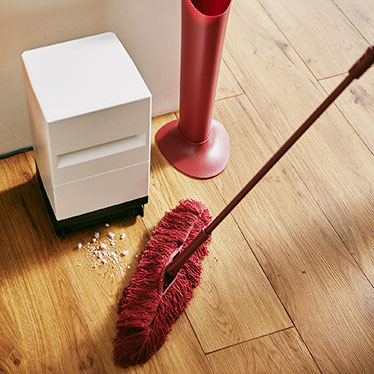 ダスキンのモップクリーナーの中で最も運転音が低減。夜だけでなく、空気中に舞っているホコリが少ない早朝のおそうじタイムにも使用でき、おそうじがはかどります。