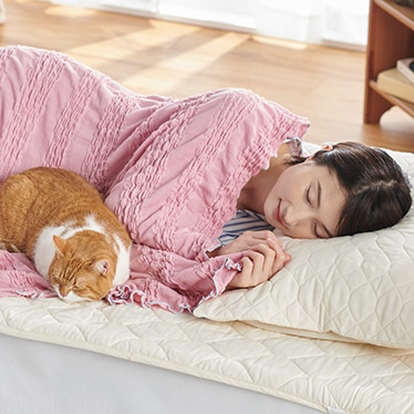 肌に触れる部分は、綿100%糸を使用し、特殊な編み方で作っているので、熱や湿気を発散するだけでなく、風通し良く爽やかに眠れます。