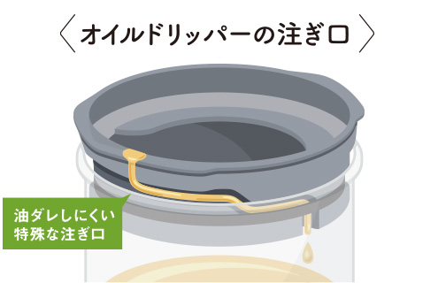 油ダレしにくい特殊な注ぎ口!