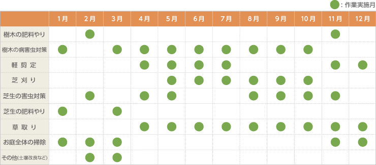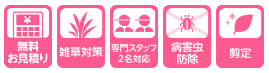 庭全体のおそうじはもちろん、樹木や芝生の肥料やり、病害虫の防除など、専門のスタッフ2名が定期的にお庭をお手入れ。お客様のご要望やお庭の状況に合わせて、適切な作業プランをご提案します。サービスは年12回または6回。1回60分または30分のコースからお選びいただけます。
