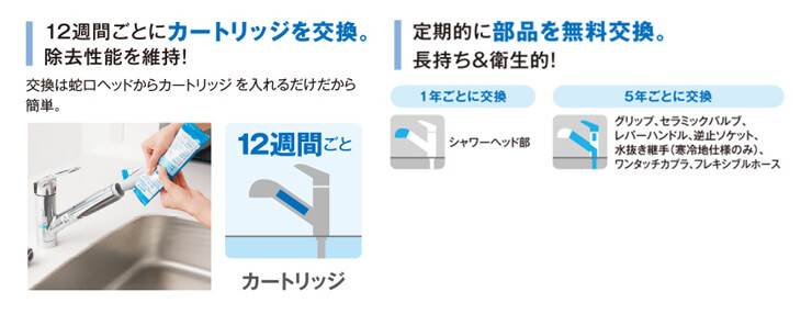 12週間ごとにカートリッジを交換して、除去性能を維持します。