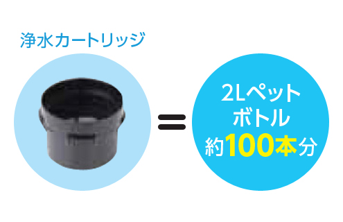 ひとつのカートリッジで200Lも!水道水に含まれるミネラルはそのままで不純物を除去します。 浄水カートリッジ=2Lペットボトル 約100本分