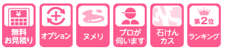 普段のおそうじではなかなか取りきれない天井の黒カビや浴槽ふたなどの入り組んだ部分の汚れ、浴室小物の水アカなどを隅から隅までキレイに落とします。