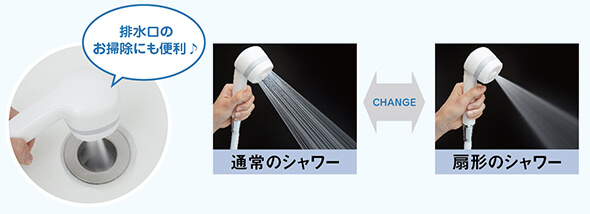 扇形にも切り替えできるお掃除に便利なシャワー!