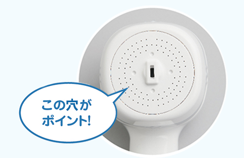 穴の大きさや数、当たりごこちなど細部にこだわった節水シャワーです。